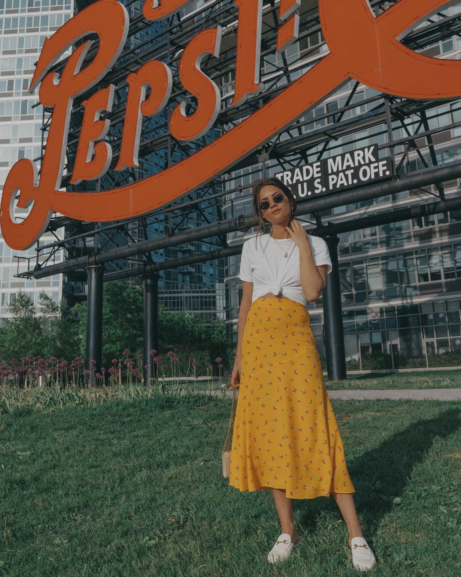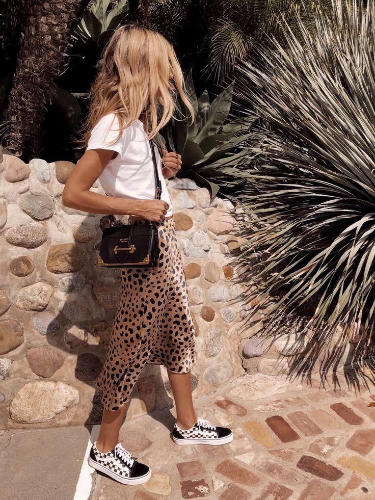 Blazers are most commonly worn open and oversized over other clothes. these can be work over a simple t-shirt with some jean shorts or a skirt. In this picture the tan blazer is paired over top of a simple wrap dress along with some Balenciaga sneakers giving it that street style look. This outfit is well accessorized with some stacked necklaces and a big hot pink bag for a bold pop of color.